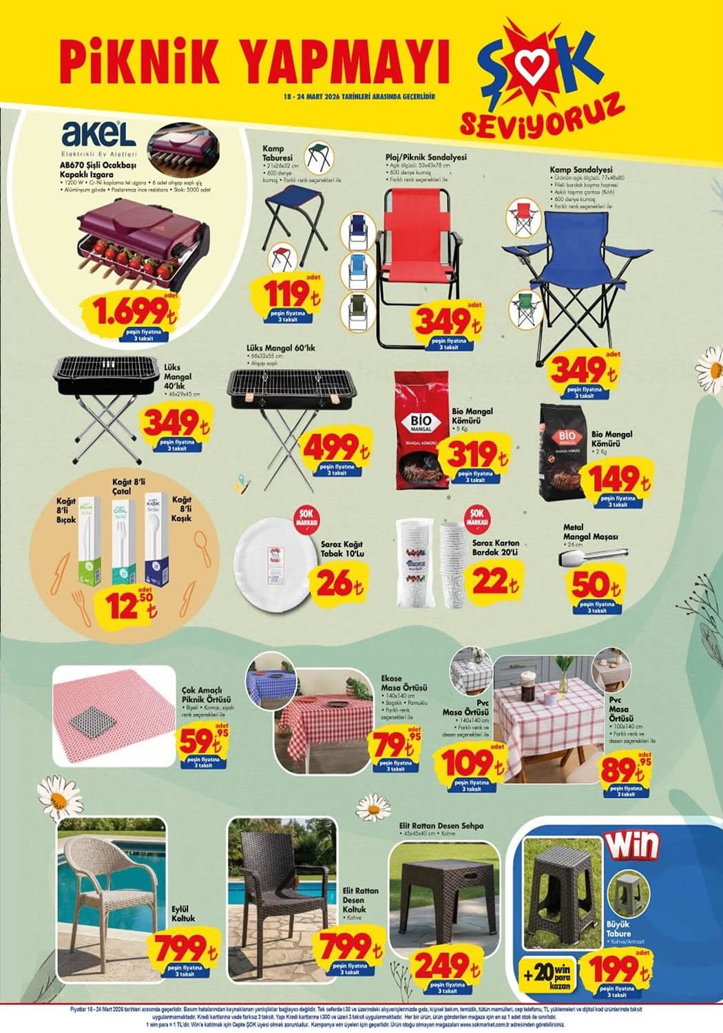 18 Mart ŞOK Aktüel kataloğunda ilk dikkat çeken aktüel ürün Akel Şişli Ocakbaşı Kapaklı Izgara oluyor. ŞOK 18 Mart 2026 kataloğunda Akel Şişli Ocakbaşı Kapaklı Izgara için 1.699 TL fiyat karşımıza çıkıyor. ŞOK 18 Mart 2026 Kataloğu ile satışa sunulacak diğer aktüel ürünlere de hemen göz atalım.