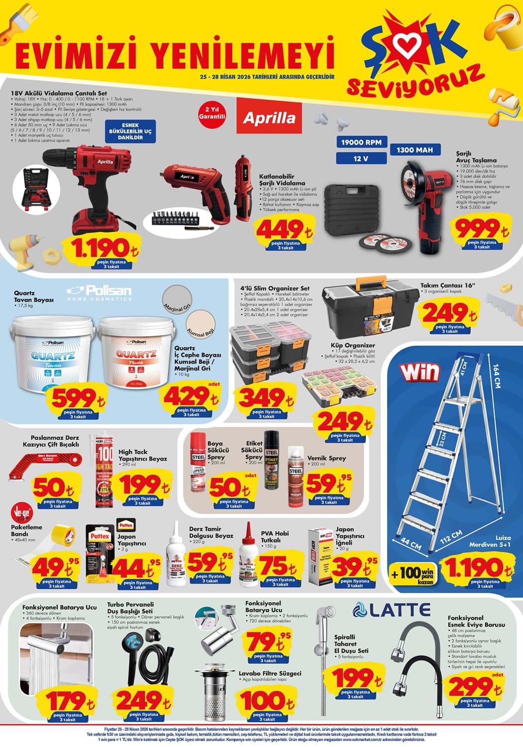 Hemen ŞOK 25 Nisan 2026 Aktüel Ürünler Kataloğu ile satışa sunulacak aktüel ürünleri ve bu ürünlerin fiyatlarını listeleyelim;