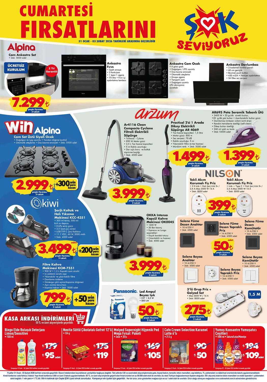 ŞOK Aktüel 31 Ocak kataloğunda Arzum Clean Compacto Cyclone Filtreli Elektrikli Süpürge, Kiwi Şarjlı Koltuk ve Halı Yıkama Makinesi, Arzum OKKA Intenso Kapsül Kahve Makinesi ve Alpina Cam Set Üstü Siyah Ocak haftanın dikkat çeken aktüel ürünleri arasında yer alıyor. ŞOK 31 Ocak 2026 Aktüel Ürünler Kataloğu ile bu hafta sonu gelecek tüm ürünlere sayfamızın devamından ulaşabilirsiniz.