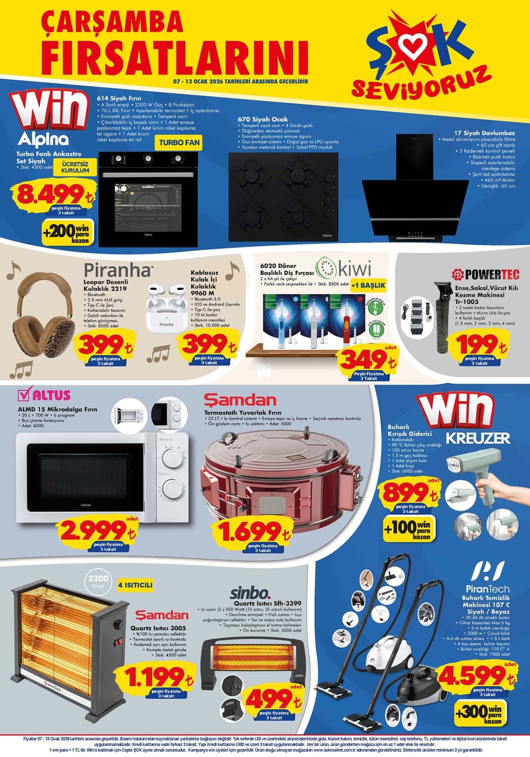 ŞOK Market 7 Ocak kampanyasında PiranTech Buharlı Temizlik Makinesi, Altus Mikrodalga Fırın, Şamdan Termostatlı Yuvarlak Fırın ve Kadın Leopar Desenli Kadife Pijama Takımı haftanın dikkat çeken aktüel ürünleri arasında yer alıyor. ŞOK 7 Ocak 2026 Aktüel Ürünler Kataloğu ile bu hafta satışa sunulacak tüm ürünlere sayfamızın devamından ulaşabilirsiniz.